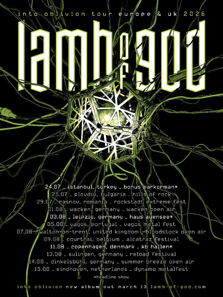 Following the North American run, ‘Lamb of God’ will return to Europe and the UK for select headline performances and major festival appearances including Wacken Open Air and Bloodstock Open Air.